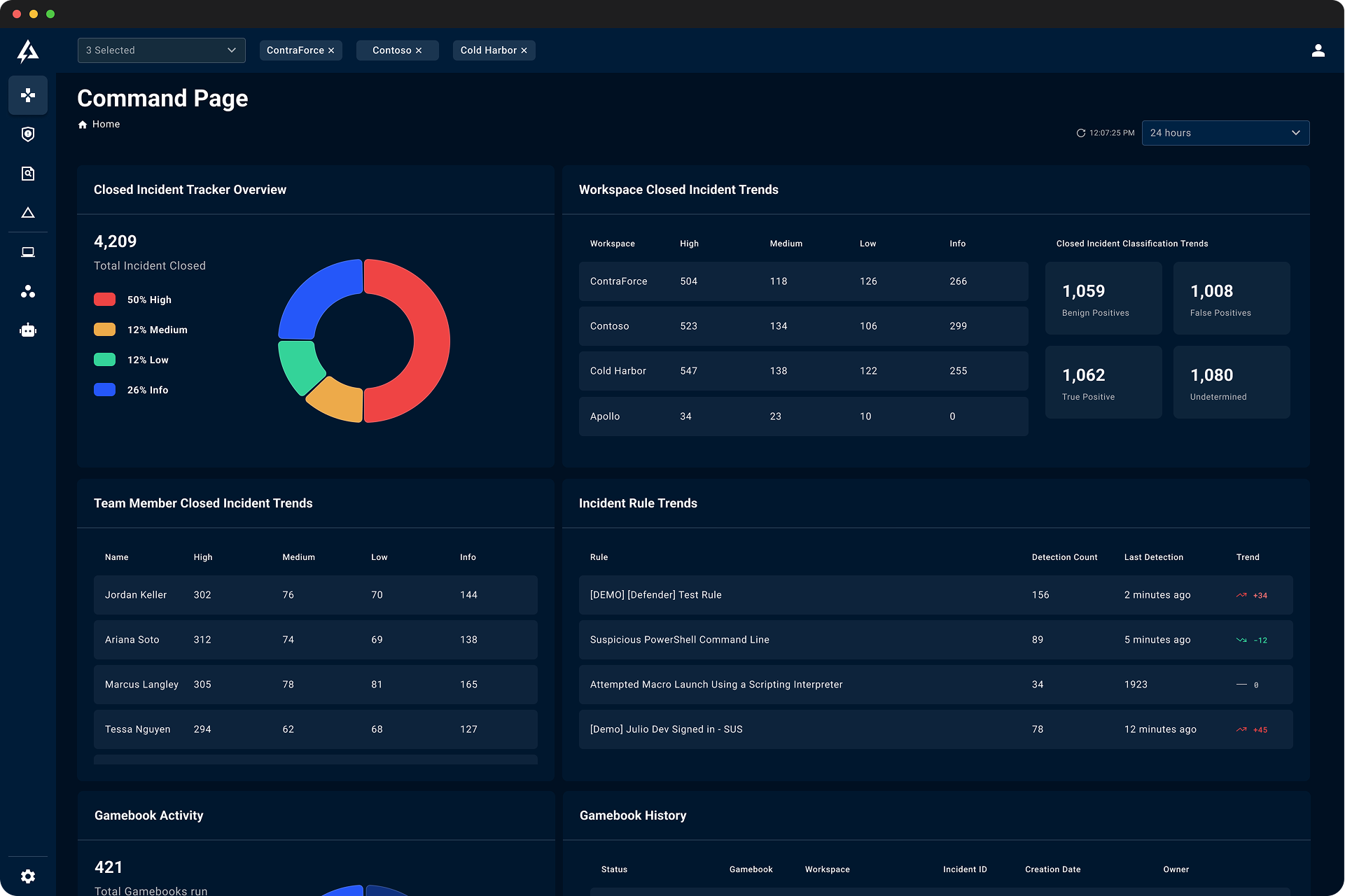 ContraForce unifies alerts, investigations, and response workflows into a single command view powered by AI Agents. Analysts can investigate and remediate incidents instantly—without switching tools or losing context.
